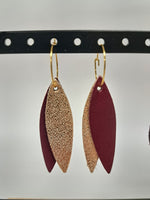 Boucles d'oreilles en cuir bordeaux et rose doré