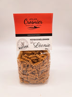 Ces délicieuses pâtes torsadées "la Léonie" sont créées à partir de blé complet pour un goût authentique. Savourez-les seules ou avec votre sauce préférée pour un repas délicieux et nourrissant. 100% naturelles, elles sont une source riche en glucides et en vitamines.