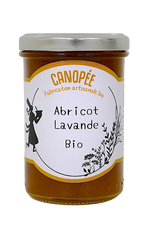 Abricot* (54.5%), sucre*, jus de citron*, pectine, fleurs de lavande françaises* (0.1%). *issus de l’agriculture biologique. Préparé avec 54.5g de fruits pour 100g.